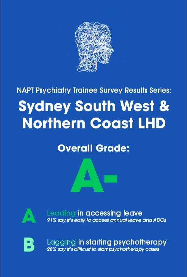 The first results for the NAPT Psychiatry Trainee results are out! Overall, NSCC LHD performed well, but areas of improvement included trainee access to psychotherapy. Keep an eye out for tomorrow, for another set of district results!